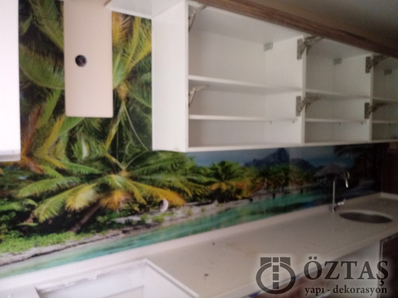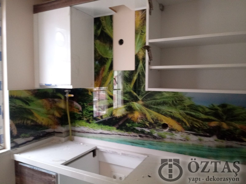 İstanbul, Anadolu Yakası ,Mutfak ,tezgah arası cam, temperli cam panel, uv baskılı tezgah arası cam, 6mm temperli cam, 8mm temperli cam