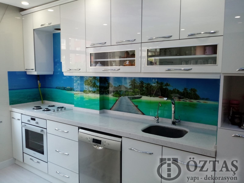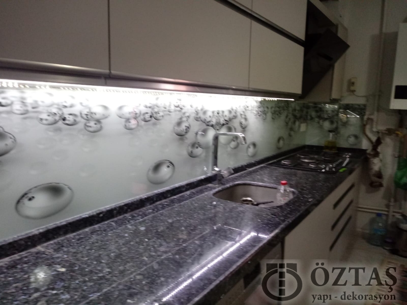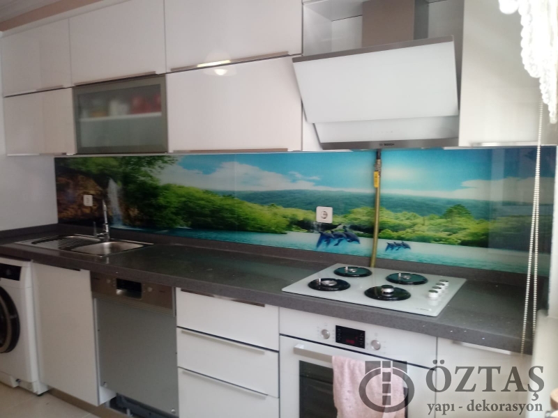 Mutfak tezgah arası cam hazırlarken müşterilerimize en büyük tavsiyemiz temperli cam yani yüksek güvenlikli cam kullanımıdır. Temperli cam üzerine yapmış olduğumuz uv baskı görüntüleri yüksek kalite ve daha canlı renklerden oluşmaktadır.